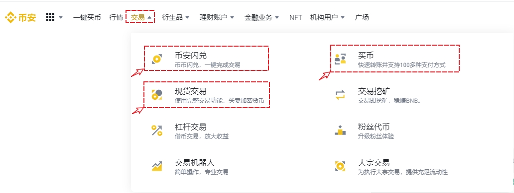 在交易购买ETH的途径通常有三类,【闪兑】、【现货交易】、【买币】,我们主要针对前两种兑换方式进行介绍。